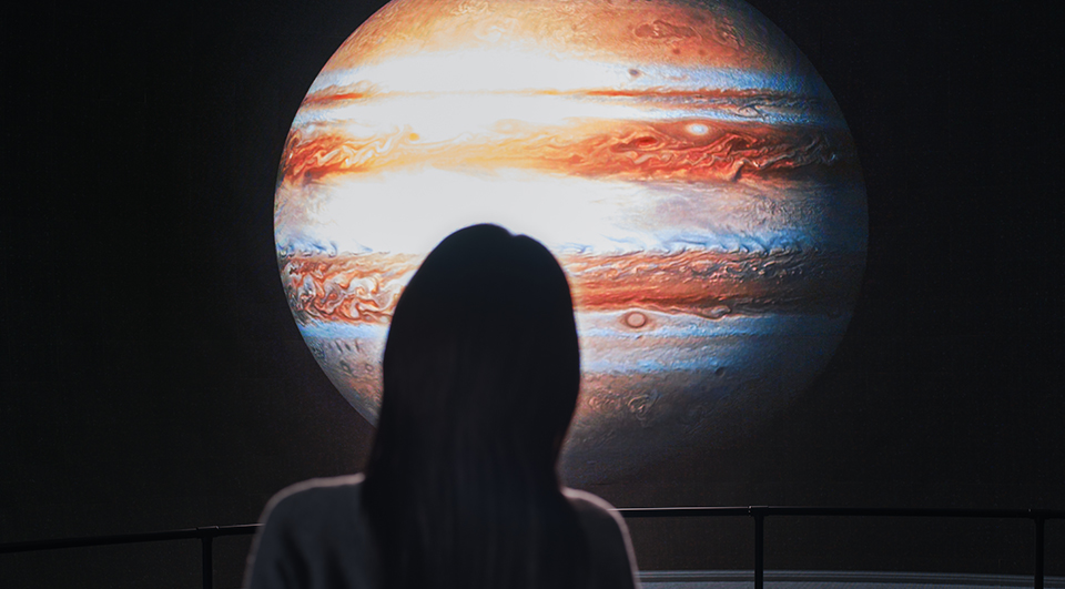 WOWは、2026年4月25日(土)から日本科学未来館にて公開される2つの没入型インスタレーション作品「Voyage 未踏のむこう」「Sky 雲の旅」のプランニング、演出、制作を担当しました。これらの作品は、惑星探査と気象観測をテーマに、宇宙や地球、そして身の回りの現象に科学の視点から新たな驚きとまなざしをもたらす映像体験として構成しています。現象の奥に潜む未知や美しさを豊かなスケールで描き出し、宇宙や地球の壮大さと出会う旅を創出しました。作品は、7階に新設される「シアタールーム」と、リニューアルされる「イノベーションホール」にて上映されます。