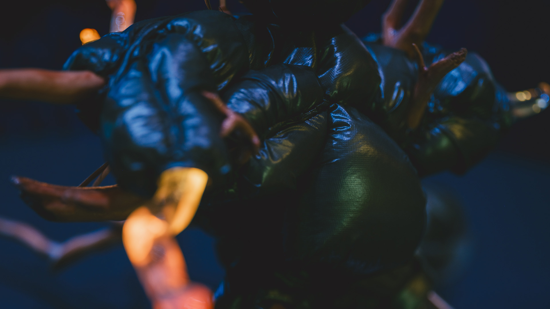 目に見える美しさの奥底には、環境や他者とつながりながら、たゆたう時間を生き続ける生命の脈動がある。本作は、かつて大地に埋もれていた木の根を用いて、生命の美しさの根幹にある命の熱量を表現した作品である。根を包む衣服は、命を育む温かな土の象徴であり、守られた根は生命の鼓動を思わせる光を放つ。その柔らかな光は、やがて周囲を静かに照らし出していく。 ▶︎ Journal "脈動する光"
